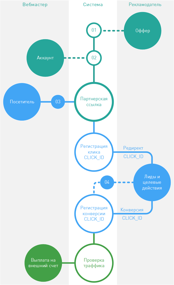- Корректно собирать и передавать click_id / wm_id / offer_id из трекинговой ссылки.