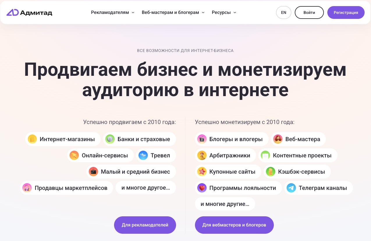 Реализован сбор и передача параметров из трекинговой ссылки Admitad: