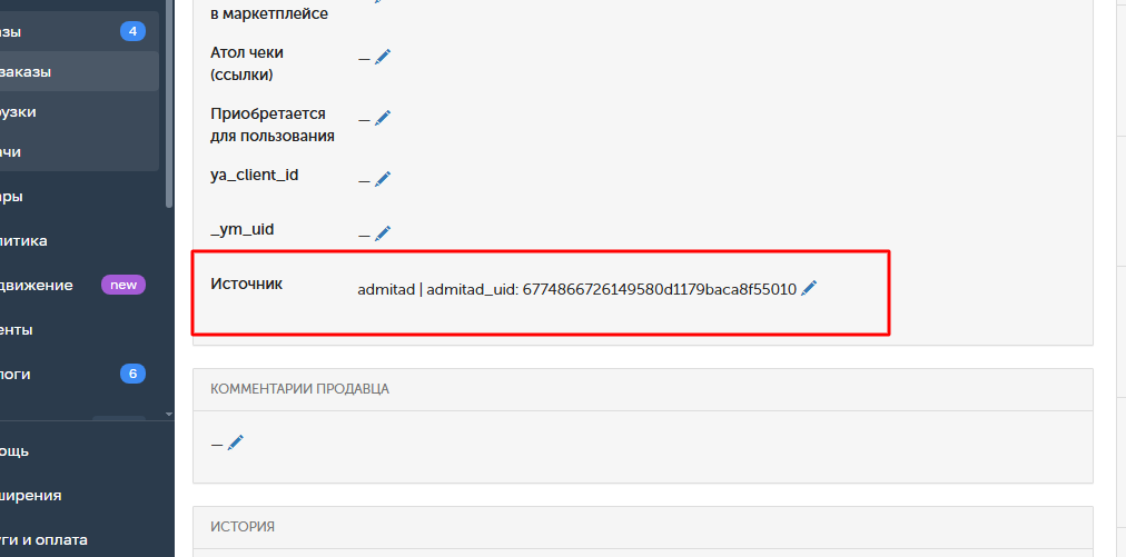 - Реализована запись источника заказа (Admitad) в дополнительное поле заказа InSales, чтобы менеджеры могли видеть, что заказ пришёл из CPA-канала.