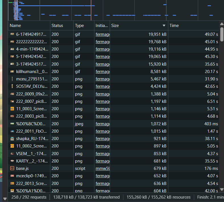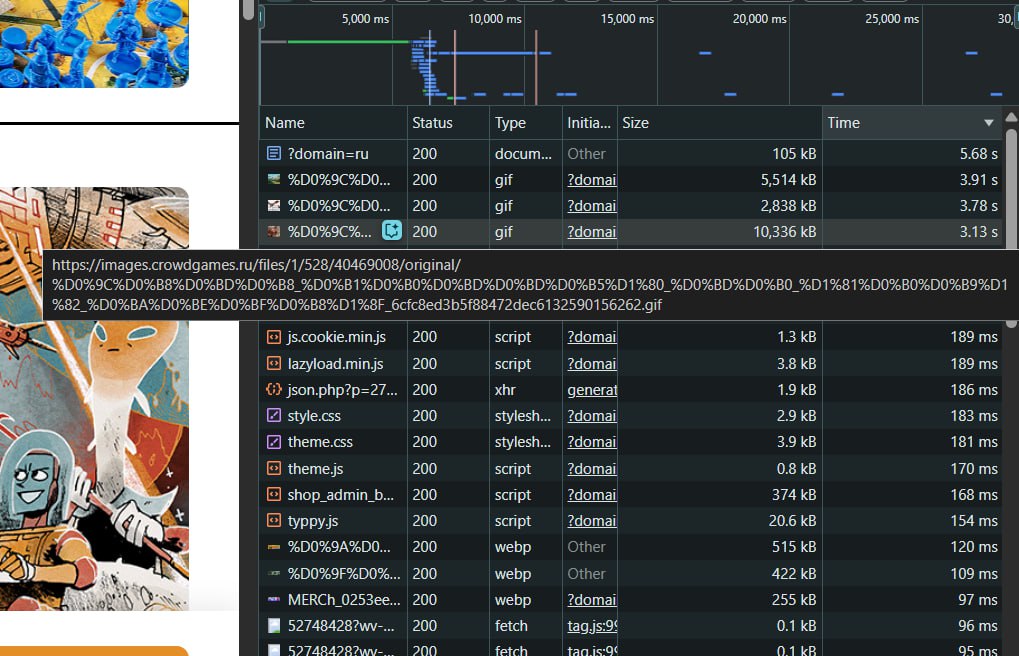 - Шапка сайта (кастомный виджет) тянула большое количество изображений — в том числе тяжёлые GIF — и замедляла загрузку страницы. По наблюдению редактора InSales, в шапке происходила итерация по множеству категорий/баннеров; маркетинг загружал GIF, которые увеличивали вес страницы.